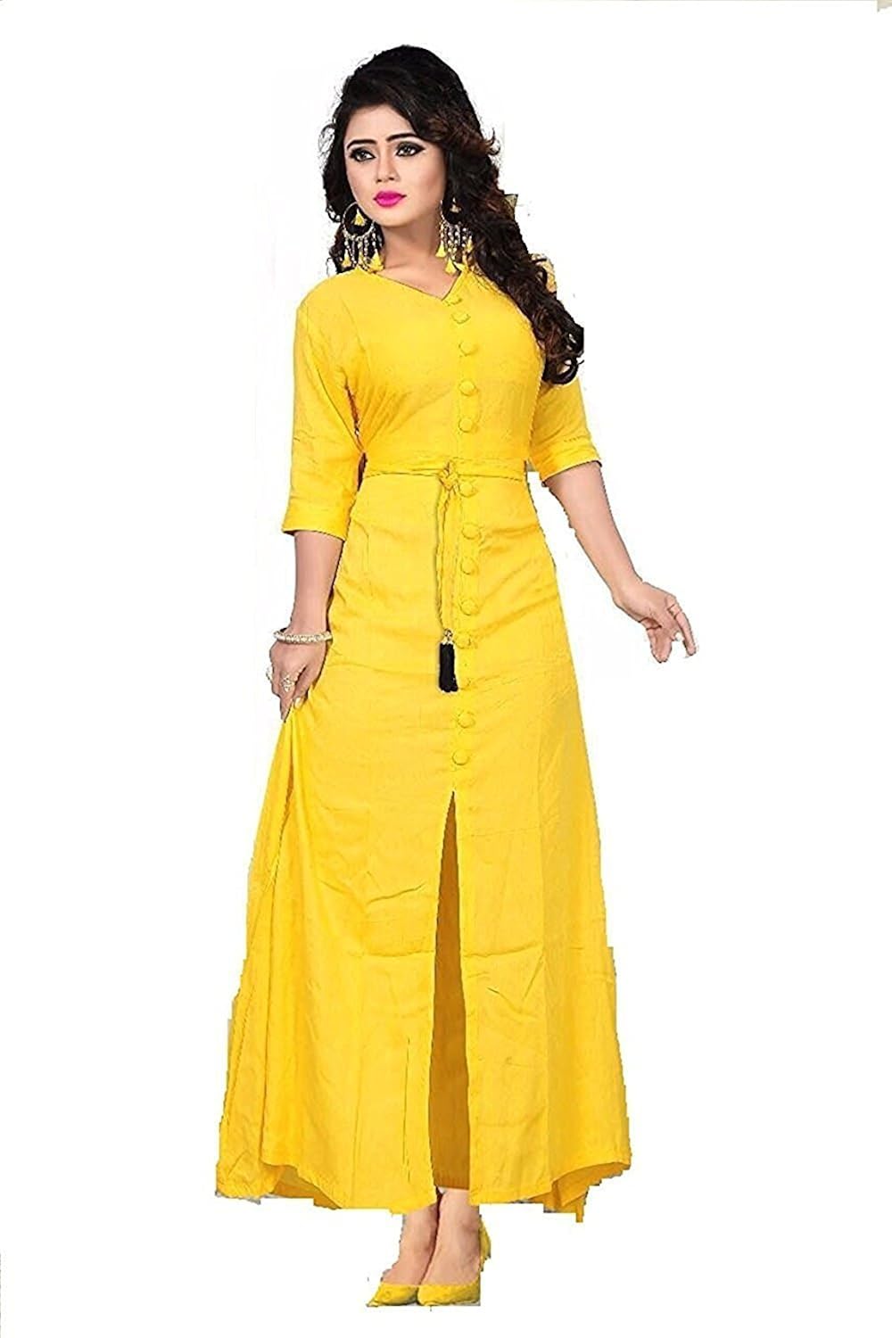 Buy Latest Fancy New Look Kurti By Ladli Group Women S Rayon Dress Material Free Size Yellow At Amazon In